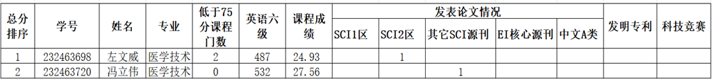 公示期为2024年9月25日-9月30日,对公示结果有异议,请在公示期内以电话、电子邮箱等方式向上海理工大学公利医院医疗技术学院研究生教务办公室反映。